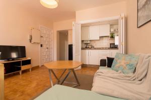 Das klimatisierte Apartment umfasst ein Schlafzimmer mit zwei Betten, ein Wohnzimmer mit Schlafsofa und Sitzbereich sowie eine ausgestattete Küche mit vollständiger Küchenausstattung inklusive Kochnische. Zur Ausstattung gehören Bügelmöglichkeiten (Bügeleisen und Bügelbrett), ein Arbeitstisch, Stauraum im Kleiderschrank mit allergikerfreundlichen Kissen (ohne Federn), Waschmaschine mit Wäschetrocknergestell, Heizung, Babybettoptionen, Steckdosen am Bett zum Laden von Geräten sowie ein Flachbildfernseher zur Unterhaltung.