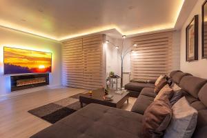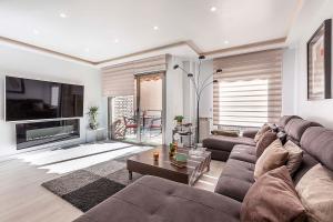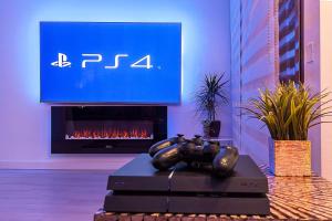 Le logement comprend quatre chambres totalisant huit lits, trois salles de bains privatives équipées d’une douche et fournissant des articles de toilette gratuits ainsi qu’une cuisine entièrement équipée avec four, réfrigérateur, lave-vaisselle, micro-ondes, grille-pain, bouilloire électrique, machine à café et tout le nécessaire pour cuisiner. Le confort en chambre inclut également une climatisation individuelle dans chaque pièce, des murs insonorisés pour garantir l’intimité ainsi qu’un parquet sur toute la surface accompagnée d’une cheminée créant une atmosphère paisible. L’appartement met aussi à disposition linge de lit et serviettes, fer à repasser avec planche séparée, armoire dressing, coin salon avec canapé, étendoir pour vêtements séchant au sol ou suspendu ainsi qu’un lit bébé/berceau chauffant non rembourré aux plumes. Les installations comprennent également un service blanchisserie comprenant lave-linge et sèche-linge ainsi qu’une console vidéo-gaming. Un téléviseur écran plat équipé des services streaming complète les équipements tandis que des prises électriques sont positionnées près du lit.